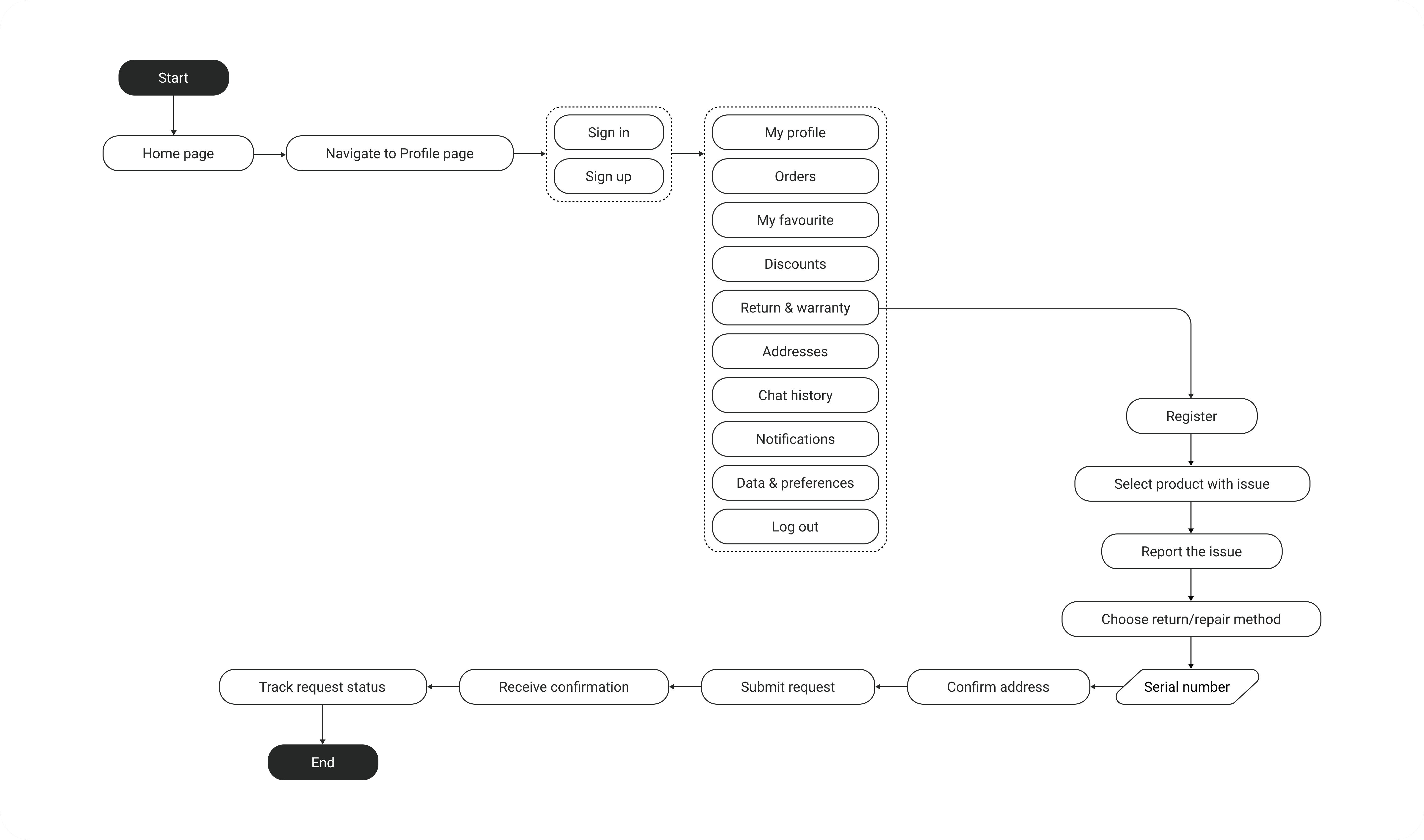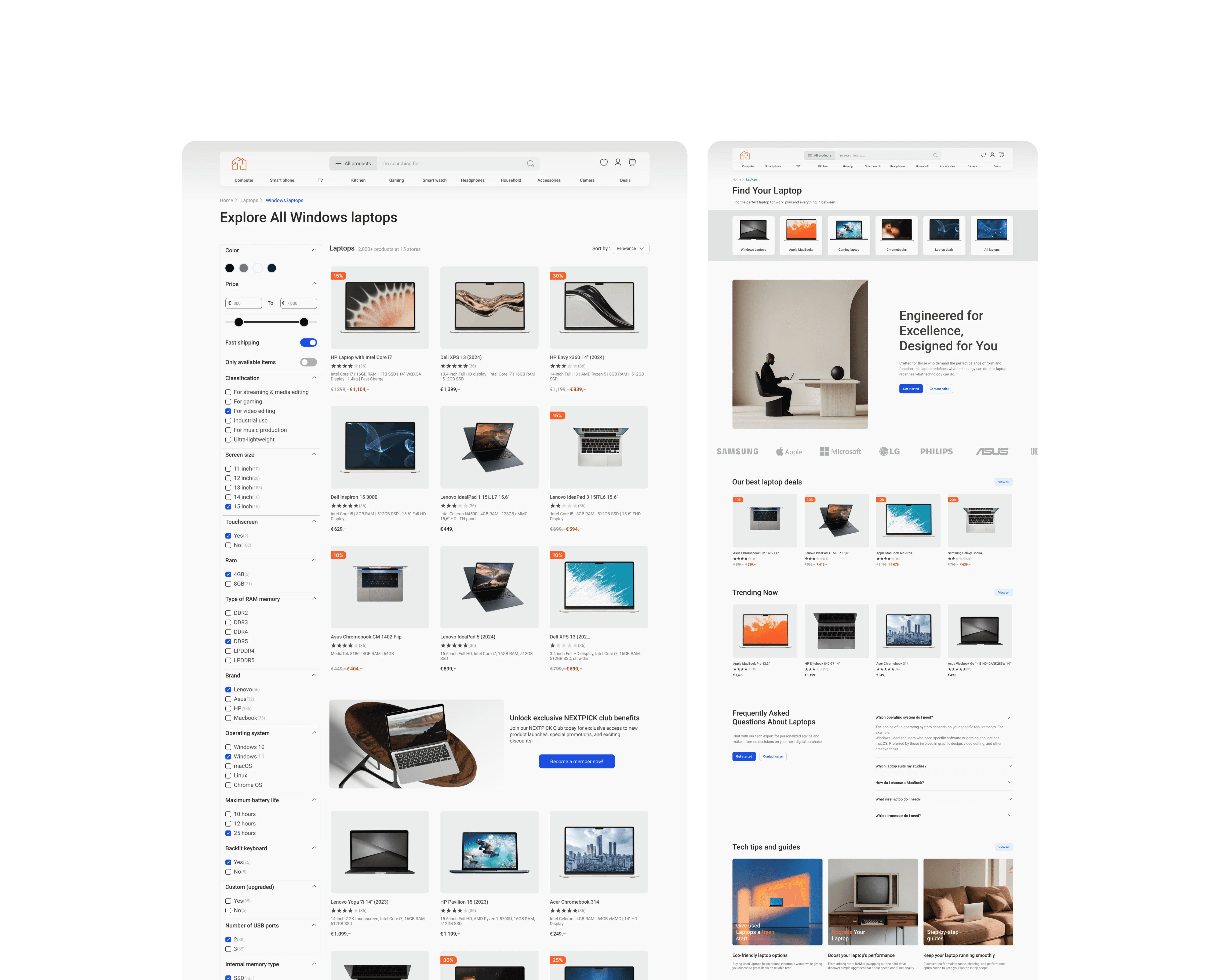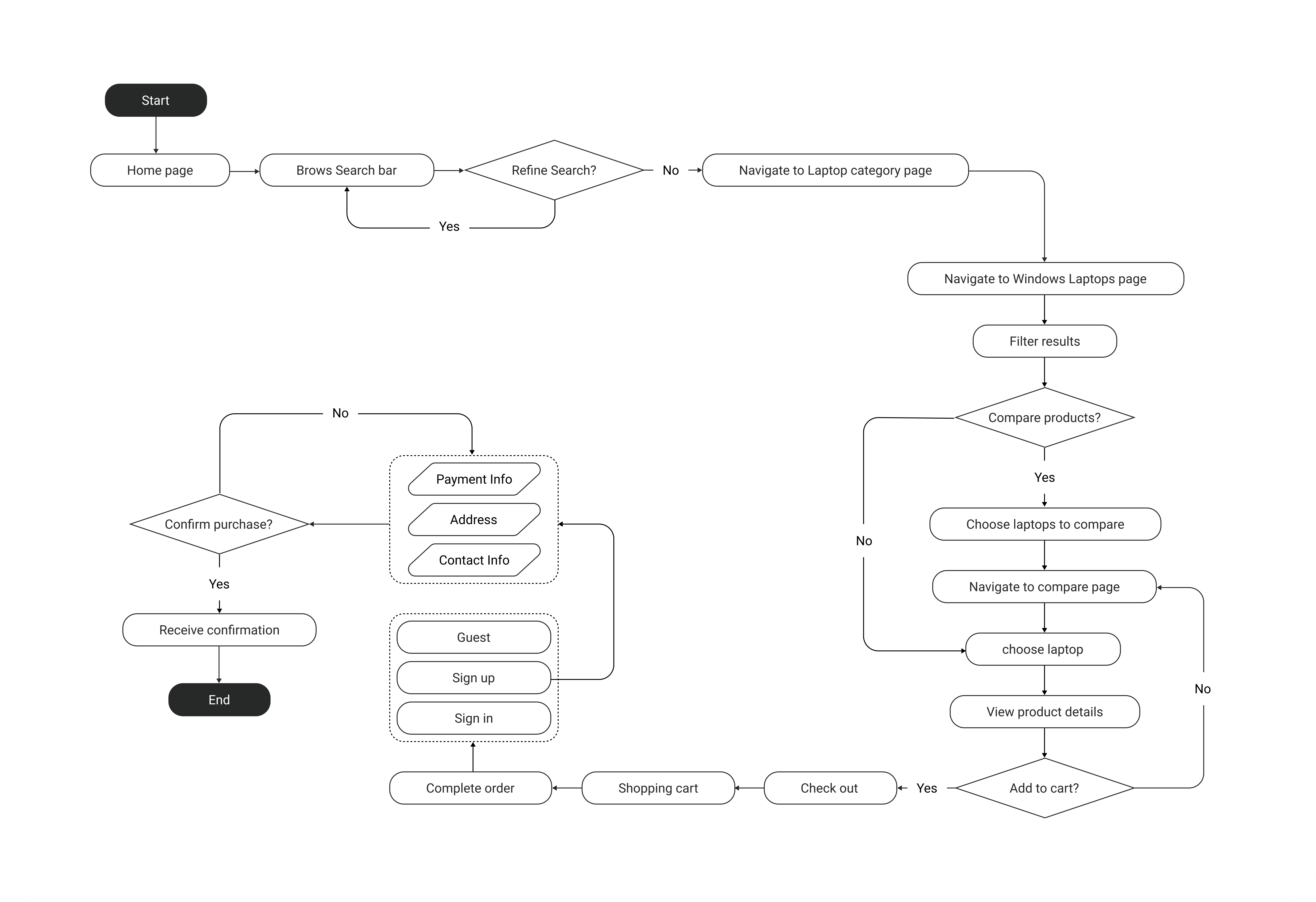 We selected two key user flows to showcase: one for purchasing a Windows laptop and another for managing order returns or repairs, each designed to enhance the user experience.