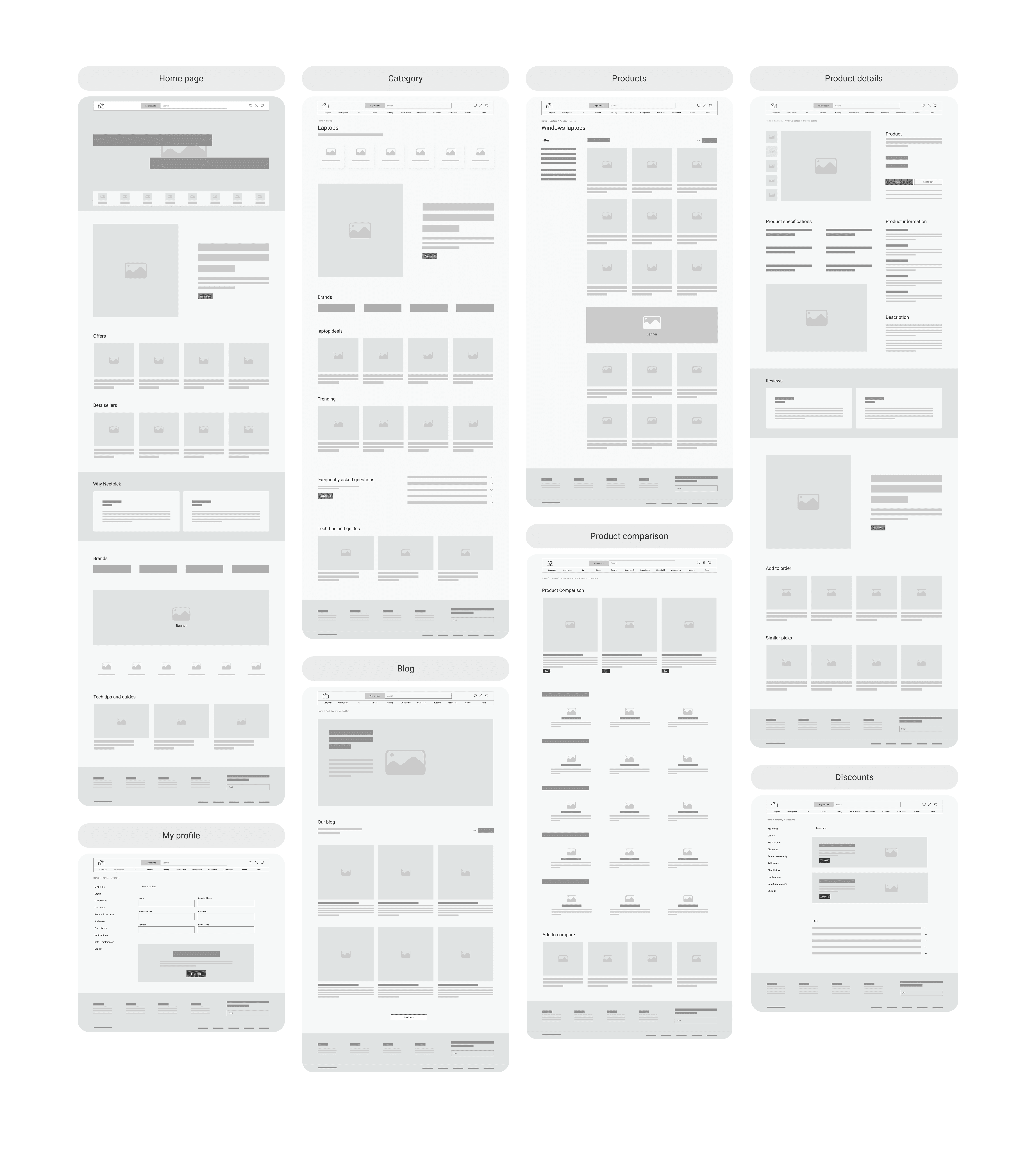 Interactive prototypes covering core journeys (product search, comparison, return process)