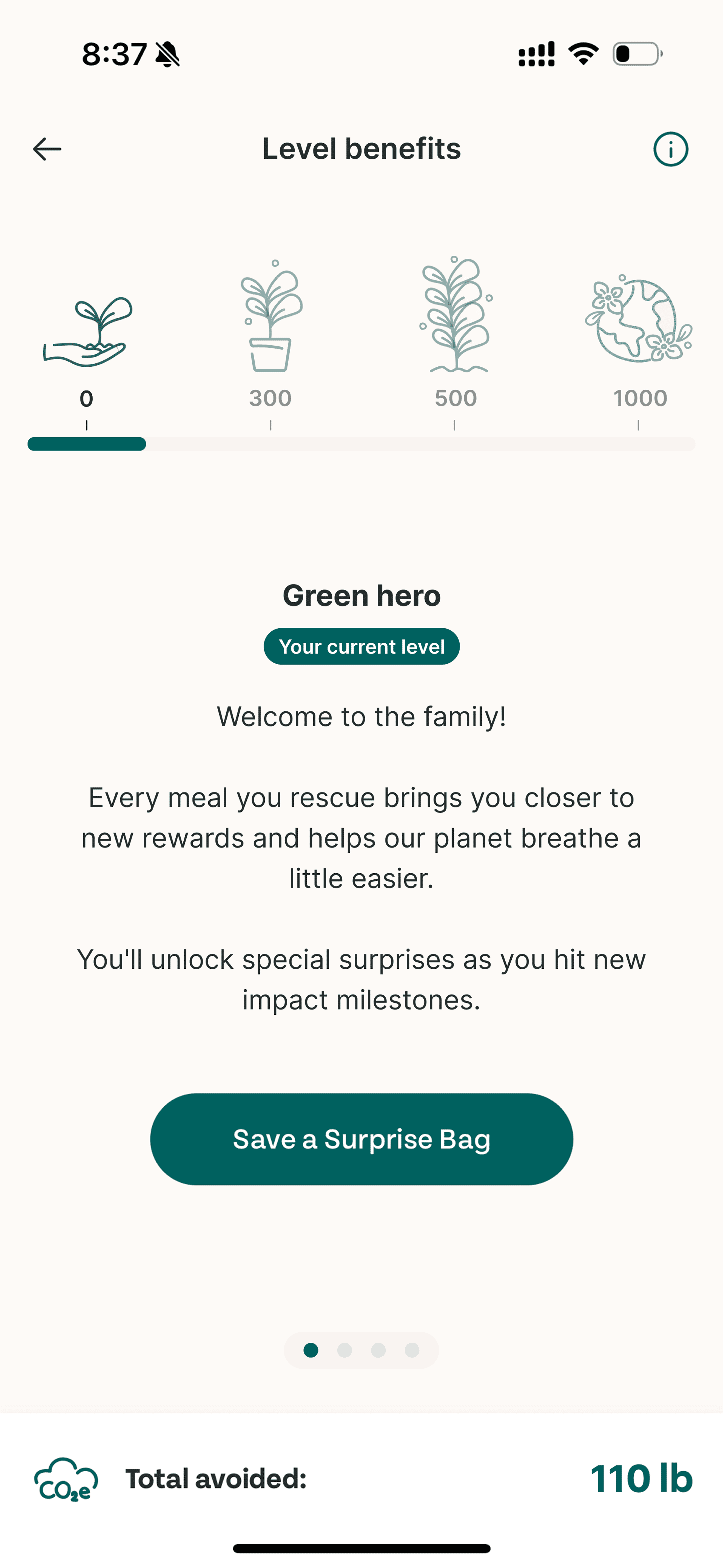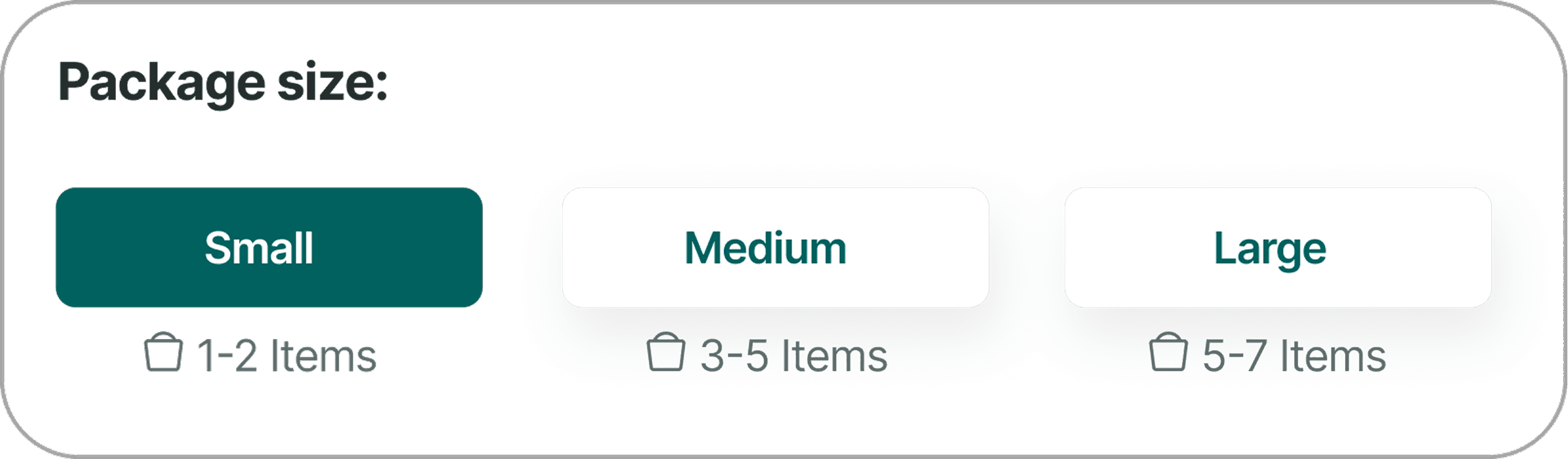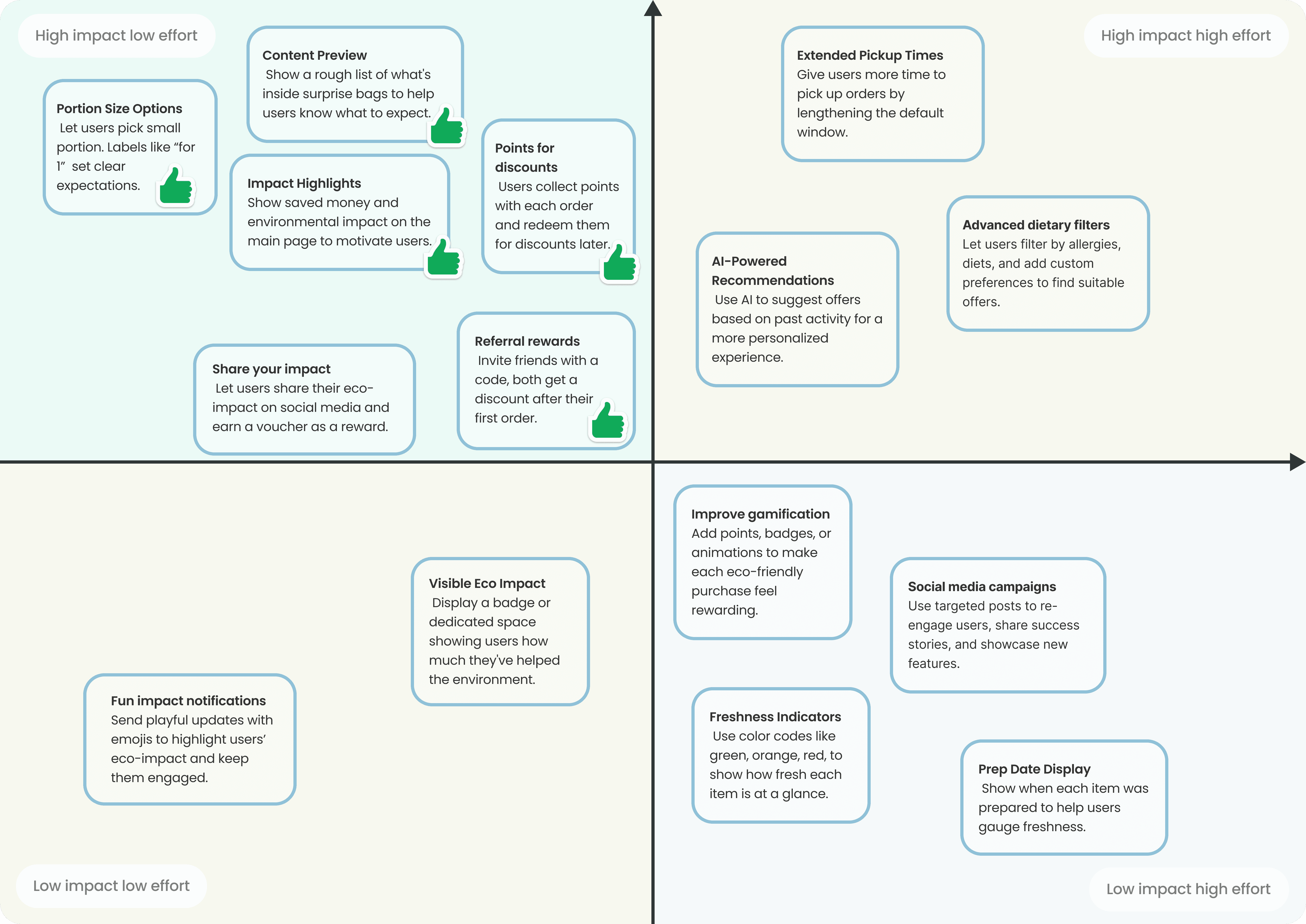 Our first idea was offering portion size options for surprise bags, so users can pick what fits their needs, save money, and reduce food waste.
