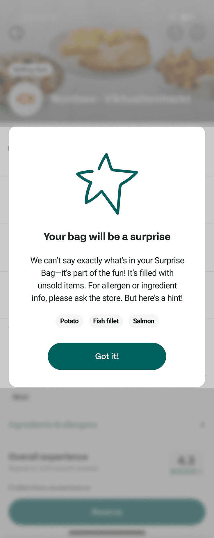 With single portion options and clearer content hints, users enjoy more control over portion size and expectations, without spoiling the surprise.