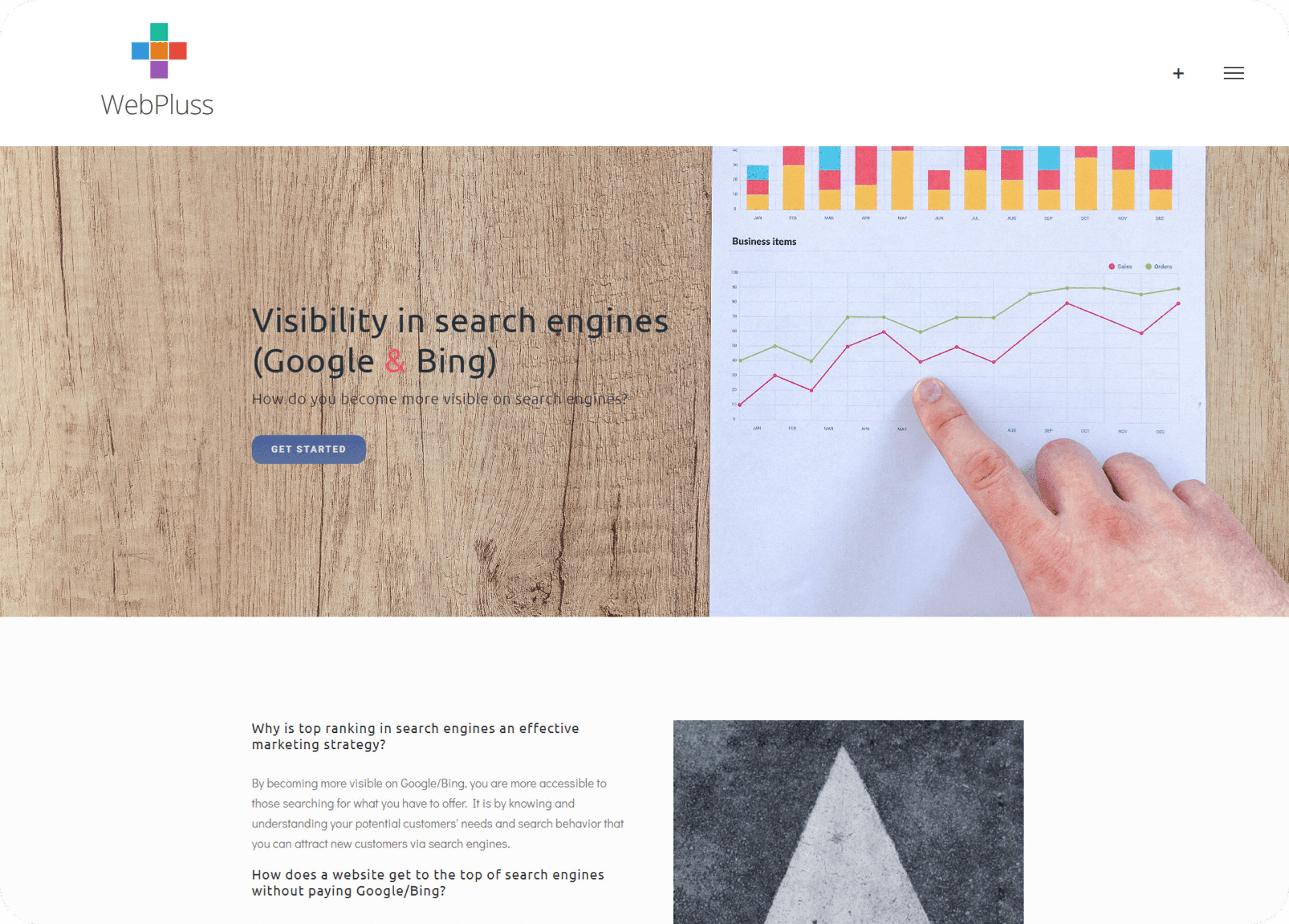 The headline clearly communicates what WebPluss offers and the value users receive.